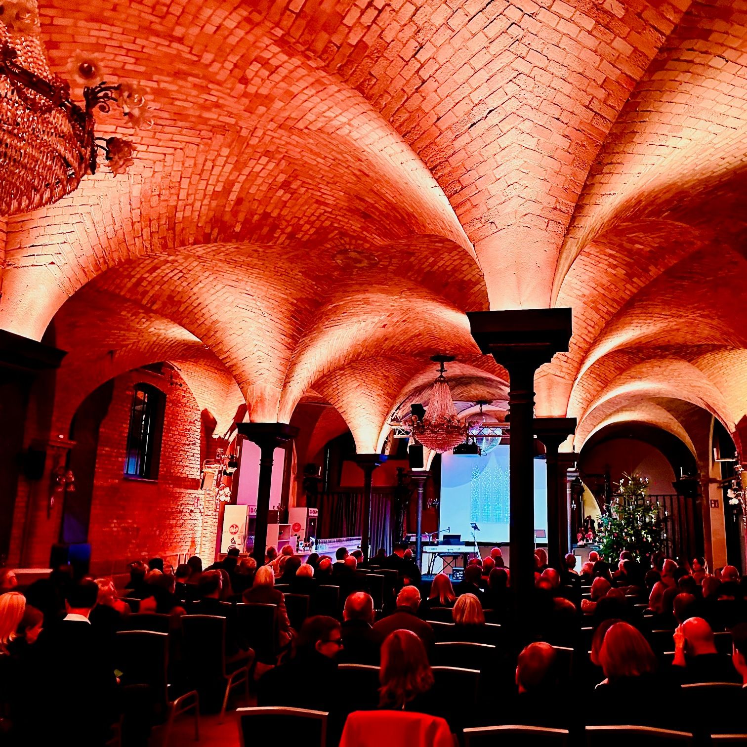 Ein stimmungsvoller Heiligabend unter Kristalllüstern im historischen Sandsteingewölbe der ehemaligen königlichen Reitställe.